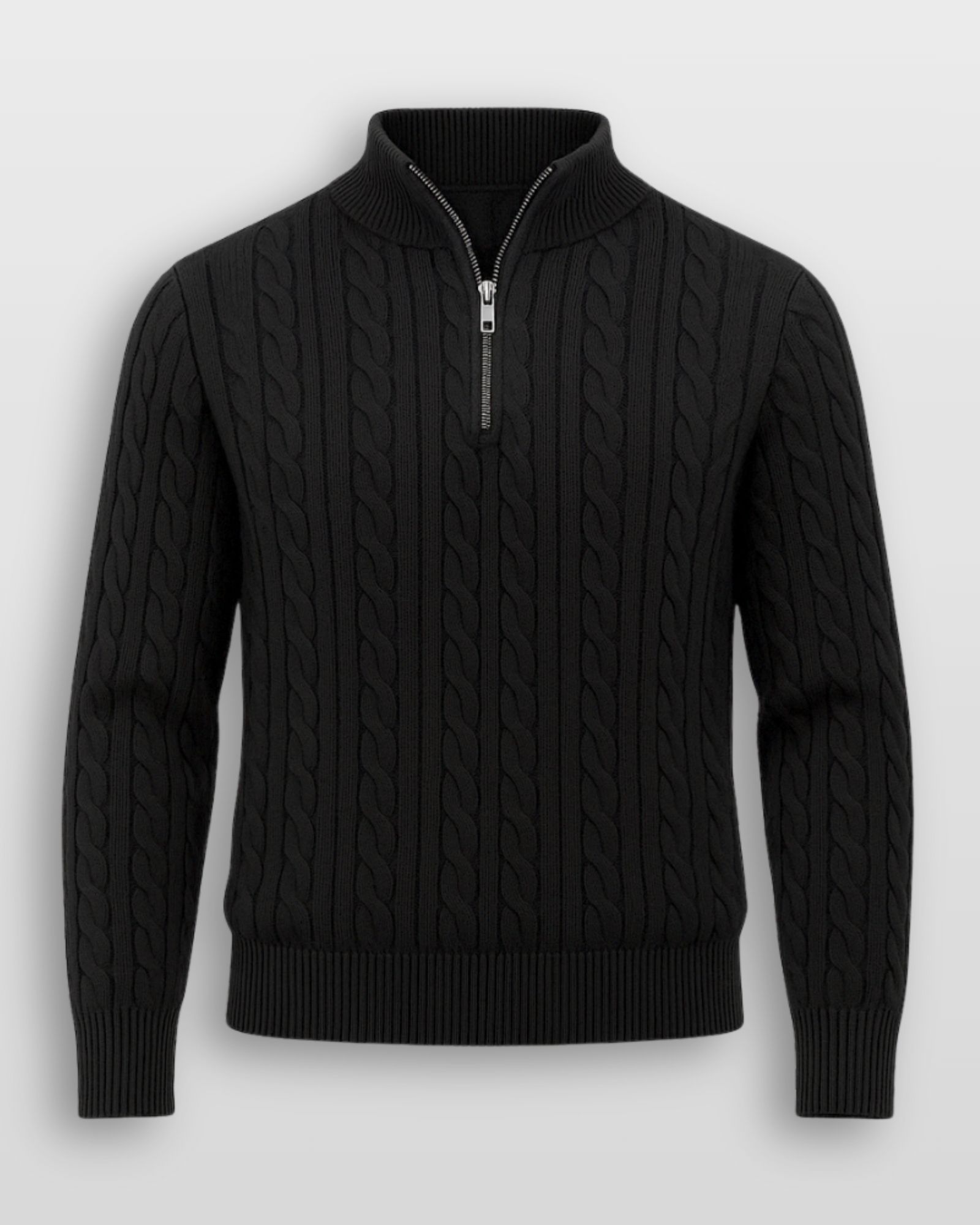 The Cable-Knit Quarter-Zip is crafted from pure cotton in a classic cable construction, offering both texture and warmth. A polished half-zip funnel neck lends versatile styling, while ribbed trims keep the fit neat and enduring.