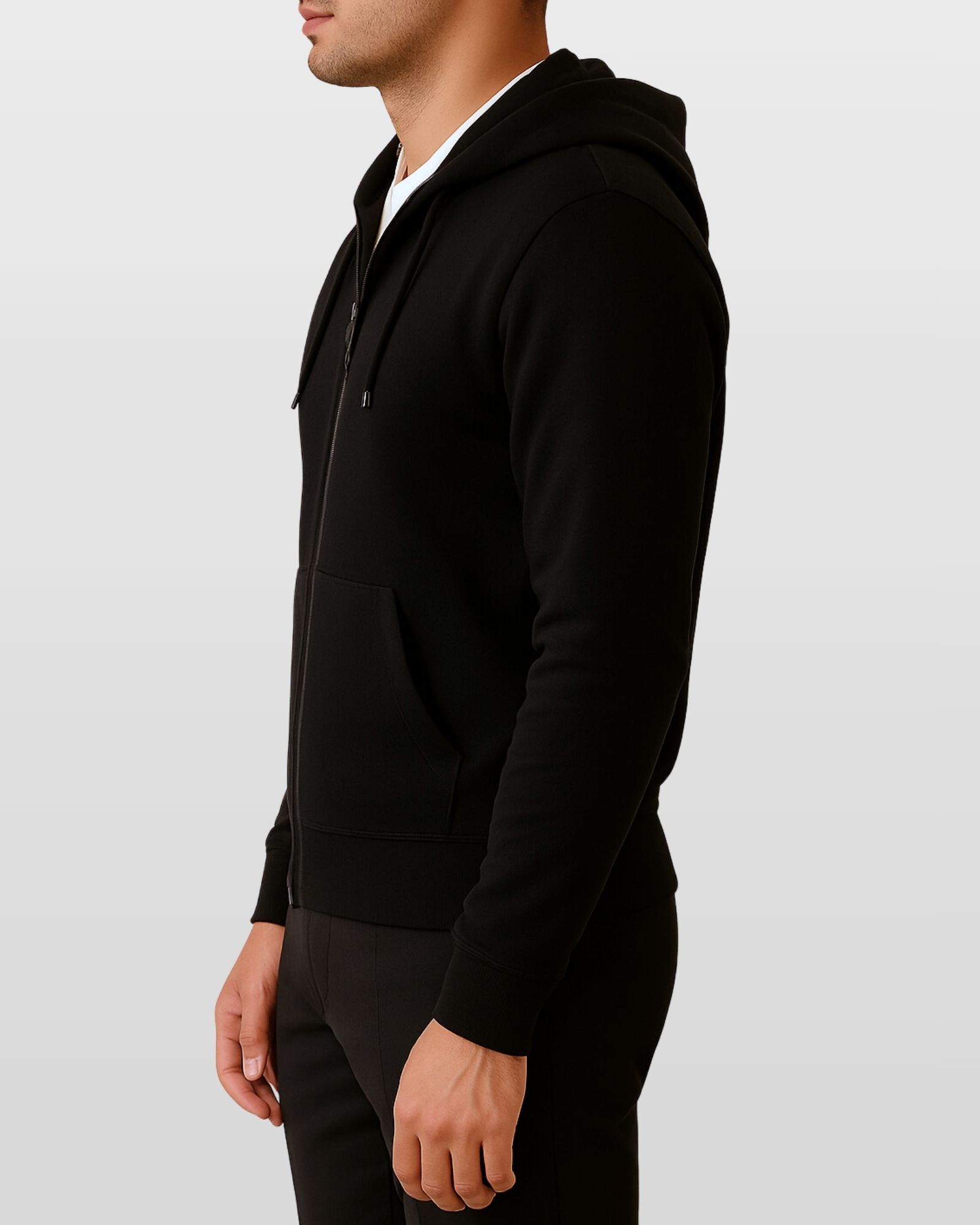 The Full-Zip Fleece Hoodie is crafted from soft cotton fleece, combining everyday comfort with a clean, versatile profile. A full-length zip and tonal drawcords give it adaptability, making it an essential piece for layering across seasons.