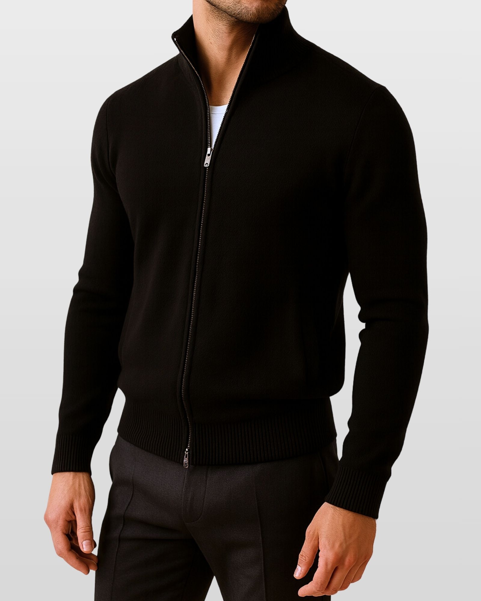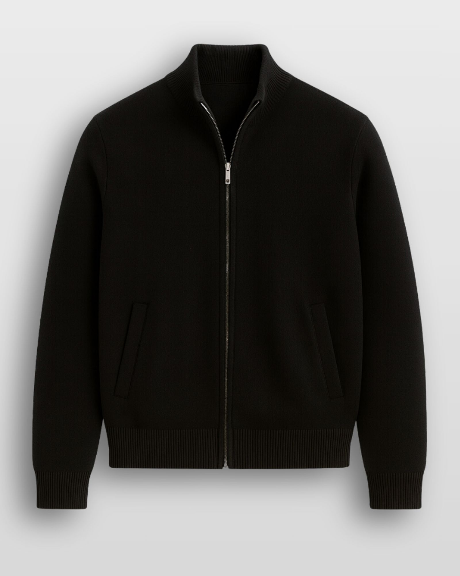 The Funnel-Neck Zipped Bomber is crafted from smooth cotton knit, delivering a clean, refined layer with modern ease. A high funnel neckline and sleek two-way zip create a polished silhouette that transitions effortlessly from office to evening.