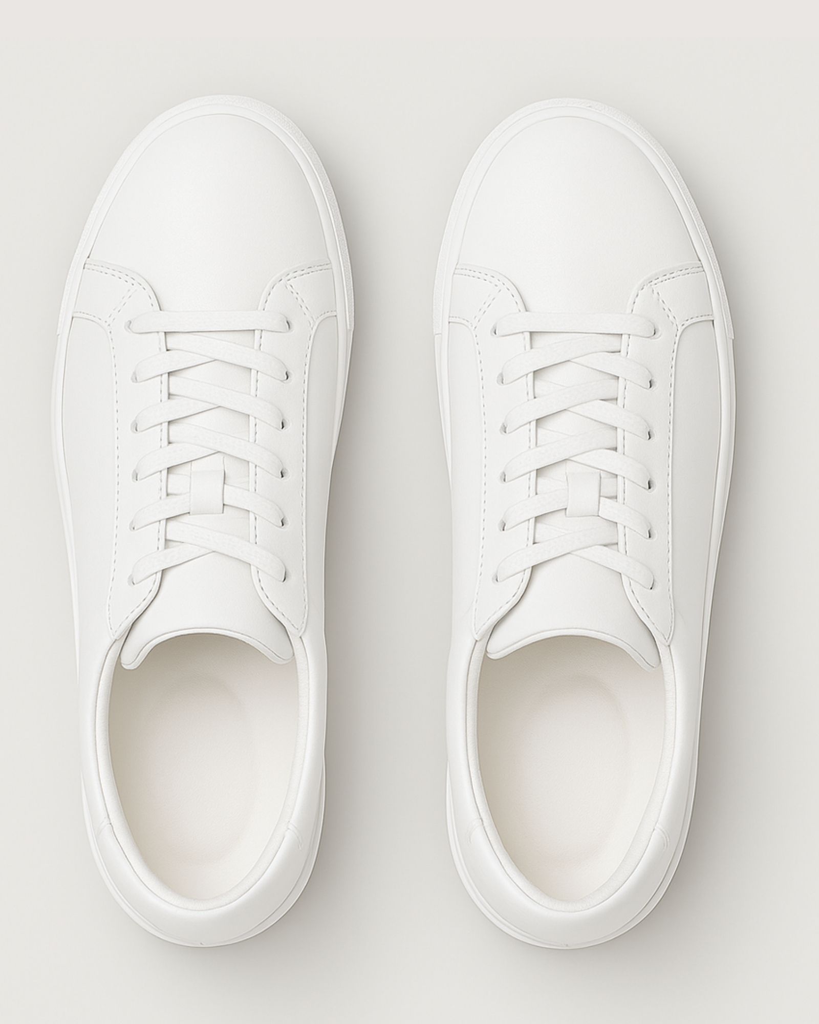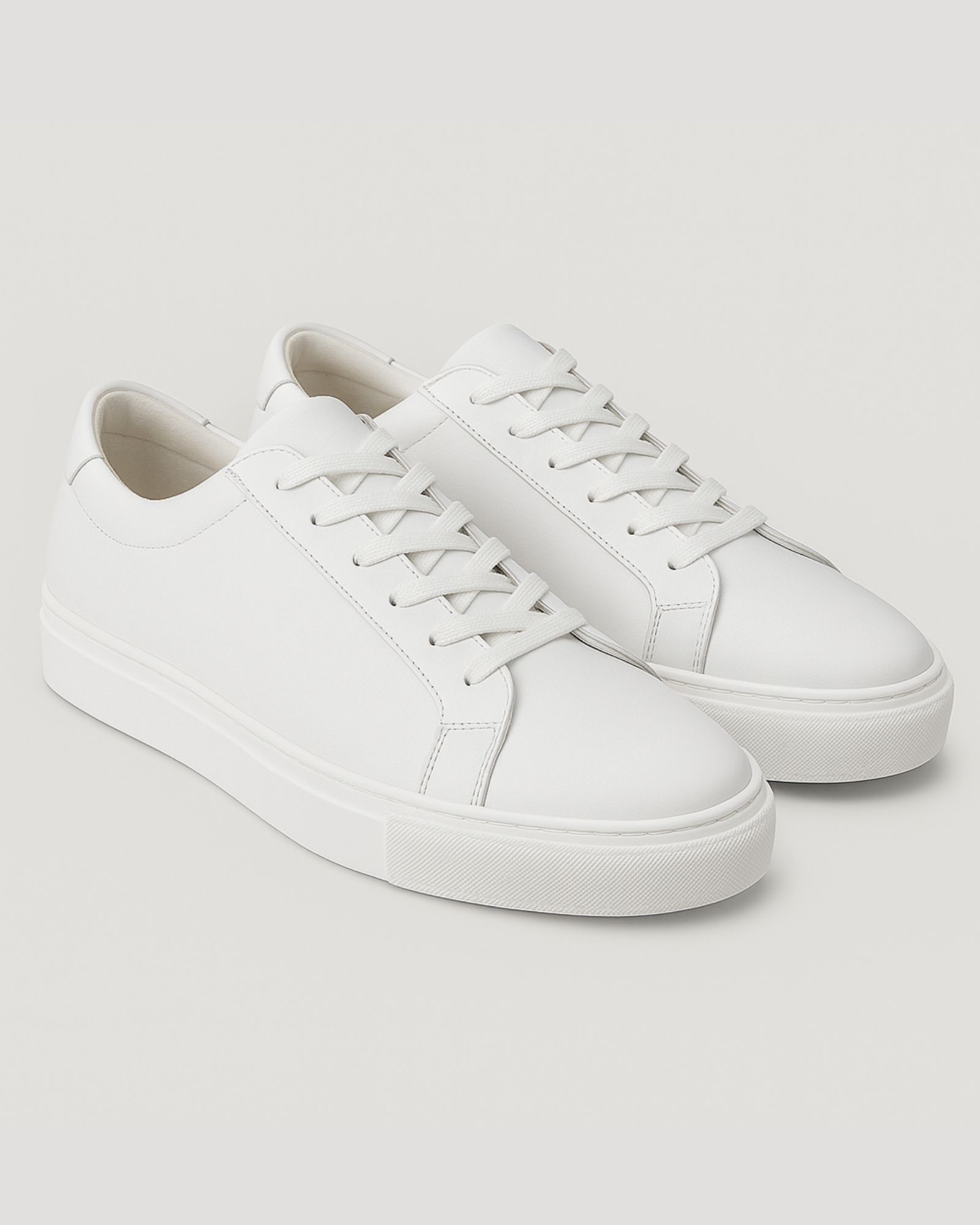 The Low Top Signature Sneaker refines a streetwear classic in smooth, white signature leather. Minimal stitching and a clean side profile create a sharp, versatile silhouette that moves easily from weekday to weekend.