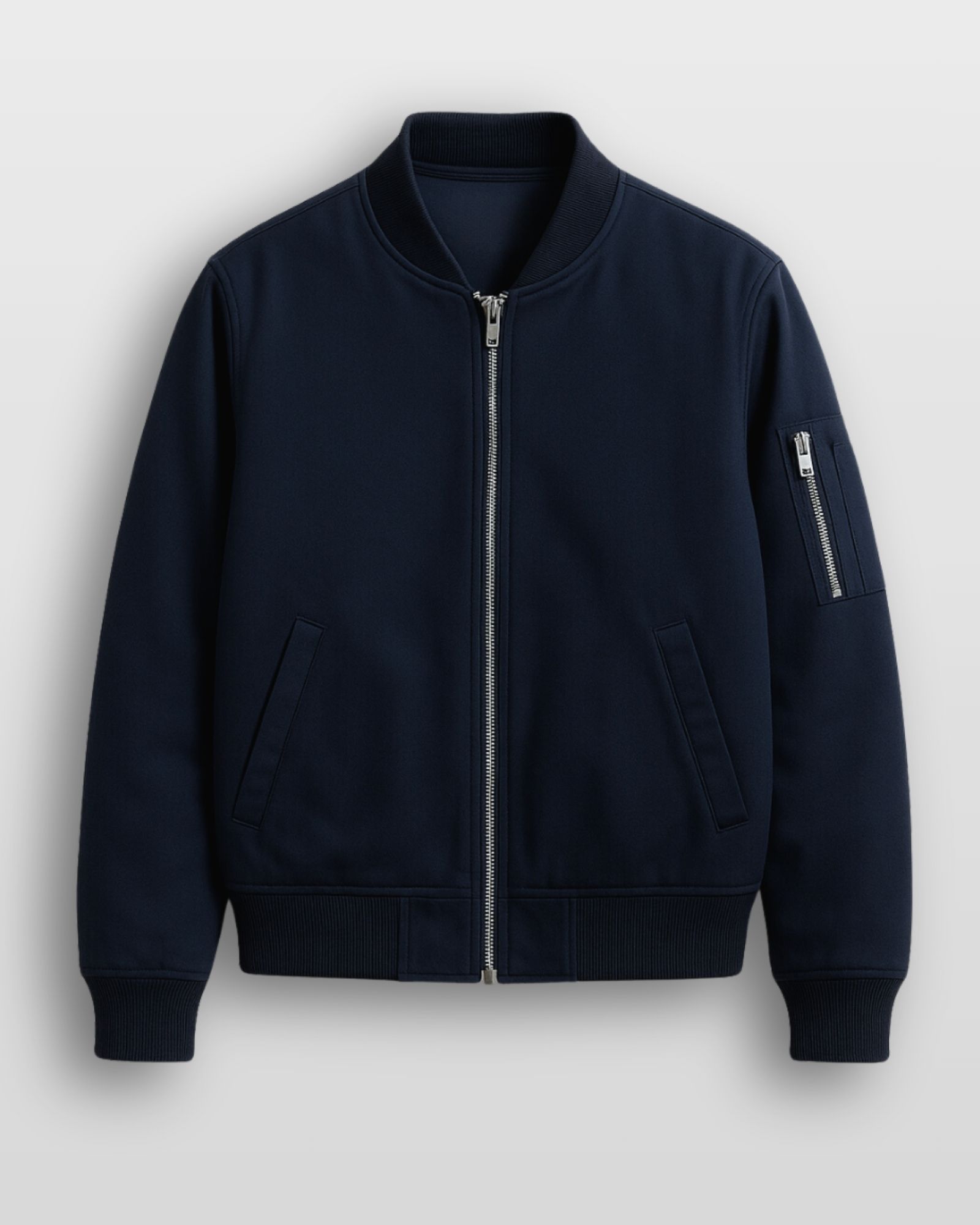 - Polished full-zip closure for clean lines